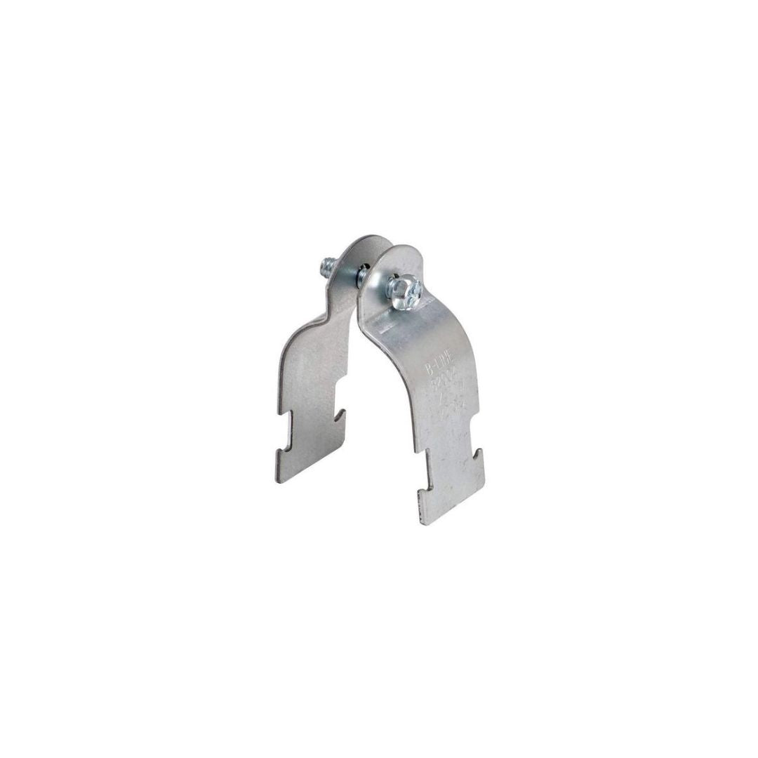 Componente para instalaciones eléctricas responsable en fijar y sujetar tuberías metálicas en rieles metálicos de manera segura y estable. Su diseño de alta calidad y su acabado electro-galvanizado ofrecen una excelente resistencia contra la corrosión y el óxido, lo que la hace ideal para aplicaciones en interiores y exteriores.