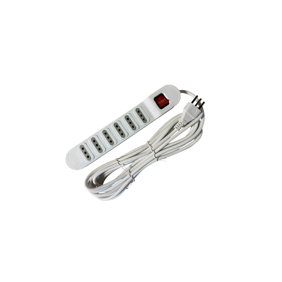 Alargador con 6 unidades de conectores hembra que le permite enchufar diferentes aparatos eléctricos de manera fácil y cómoda.
