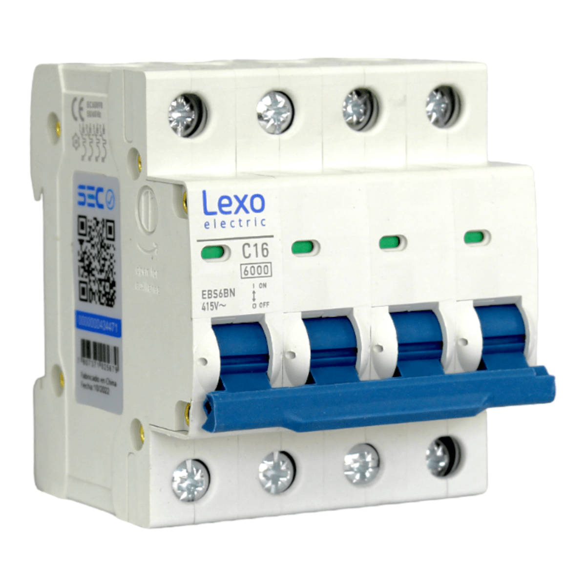 Los Interruptores Automáticos Termomagnéticos LEXO, son utilizados para la protección de la instalación eléctrica contra sobrecargas de corriente y cortocircuitos. Su función es la de actuar cuando se detecta una falla, cortando el suministro eléctrico de la instalación y permitiendo su restablecimiento cuando se haya superado una anomalía. Cuerpo de alta resistencia, autoextinguible.