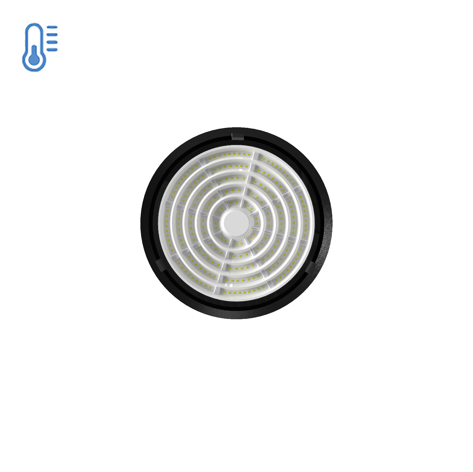 Campana Tipo UFO LED, en su versión luz fría. Es la inversión más rentable. Proporciona un gran ahorro de energía, una drástica reducción de costes de mantenimiento y reemplazo en luminarias. Su gran potencia, reducida emisión de calor y su alta protección IP las hace ideales para cualquier tipo de ambientes.