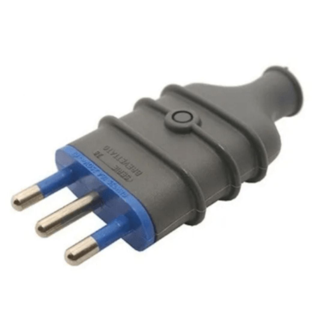 Enchufe de 3 clavijas cubierto de material de PVC para las instalaciones eléctricas que necesitas, este enchufe 2P+T incluye el contacto para hacer tierra y de esa forma poder proteger los aparatos eléctricos. Con este enchufe macho 3P tienes la garantía de hacer una instalación eléctrica de calidad certificada, está hecho de un plástico aislante resistente con tres puntas metálicas resistentes.