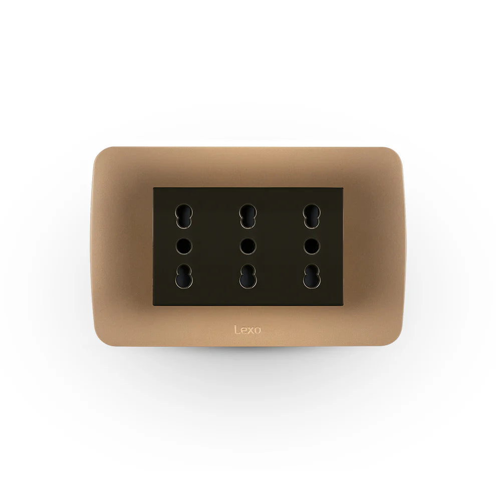 Enchufe triplex 10/16A café titanio certificado