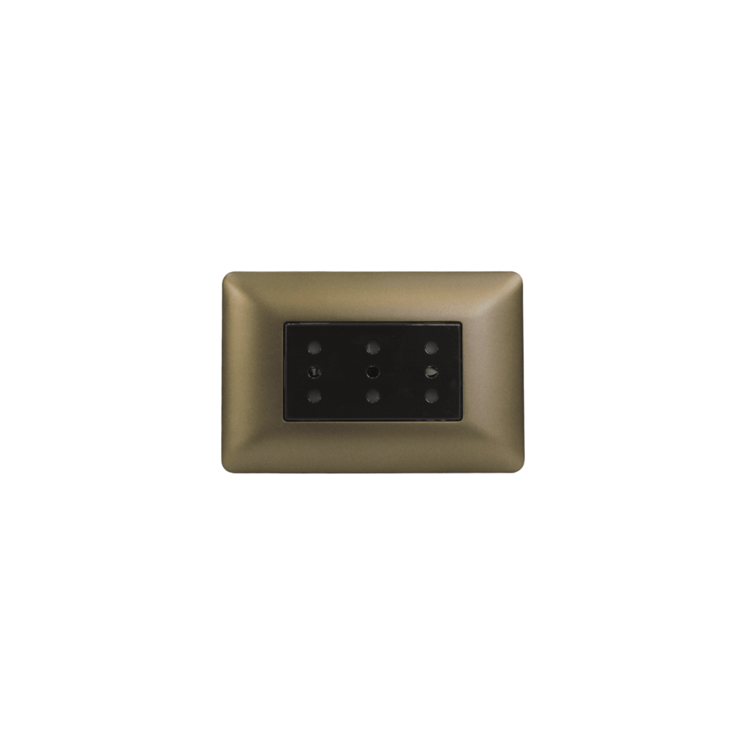 Enchufe triplex punteado café 10A certificado