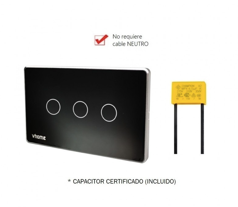Interruptor Wifi RF Vector Design SN Sin Neutro Touch 3 Canales Compatible Con Google Home y Alexa