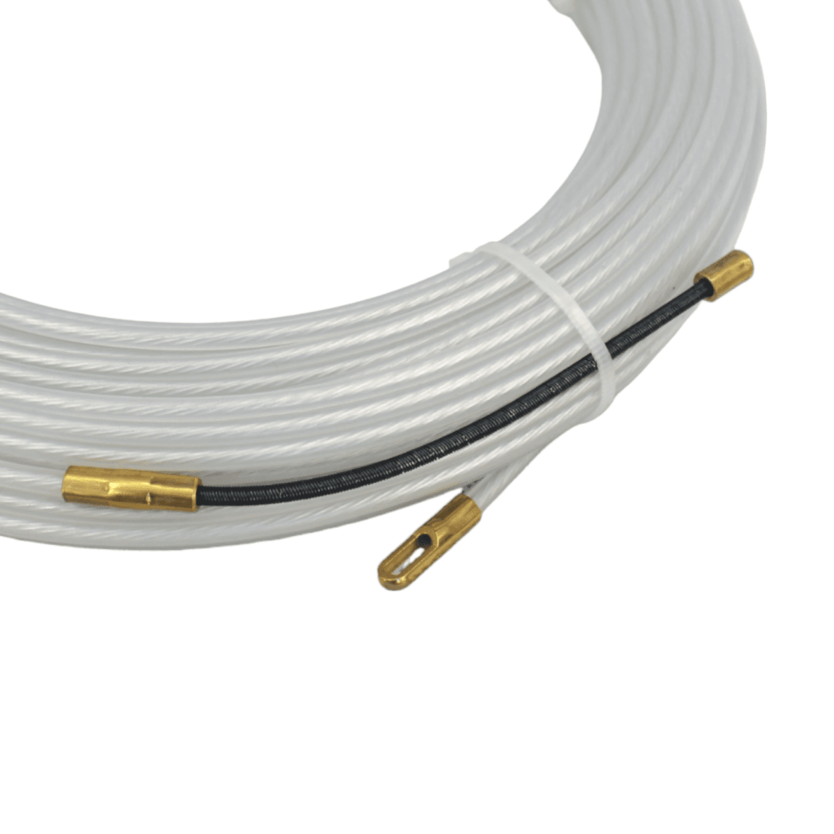 Cinta pasacables de acero con funda para el tendido de cables, facilita el paso de conductores eléctricos a través de tubos, conductos, cajas y otros elementos del sistema eléctrico, gracias a una puntera que va atravesando los ductos y llevando el cable que se quiere instalar.