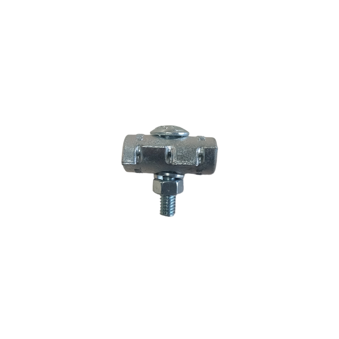Prensa paralela con perno para unir conductores y realizar derivaciones de enlace de cableados eléctricos en cruces de líneas sin tensión eléctrica.
